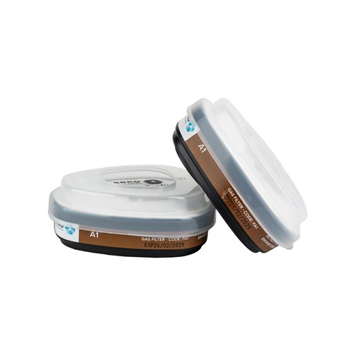 Gas filter A1, 2 pieces in a sealed plastic bag. The filters comply with EN 14387 and are CE-certified. CE marking: 0082.