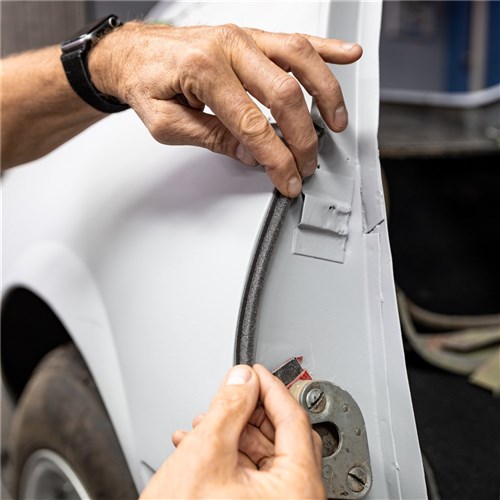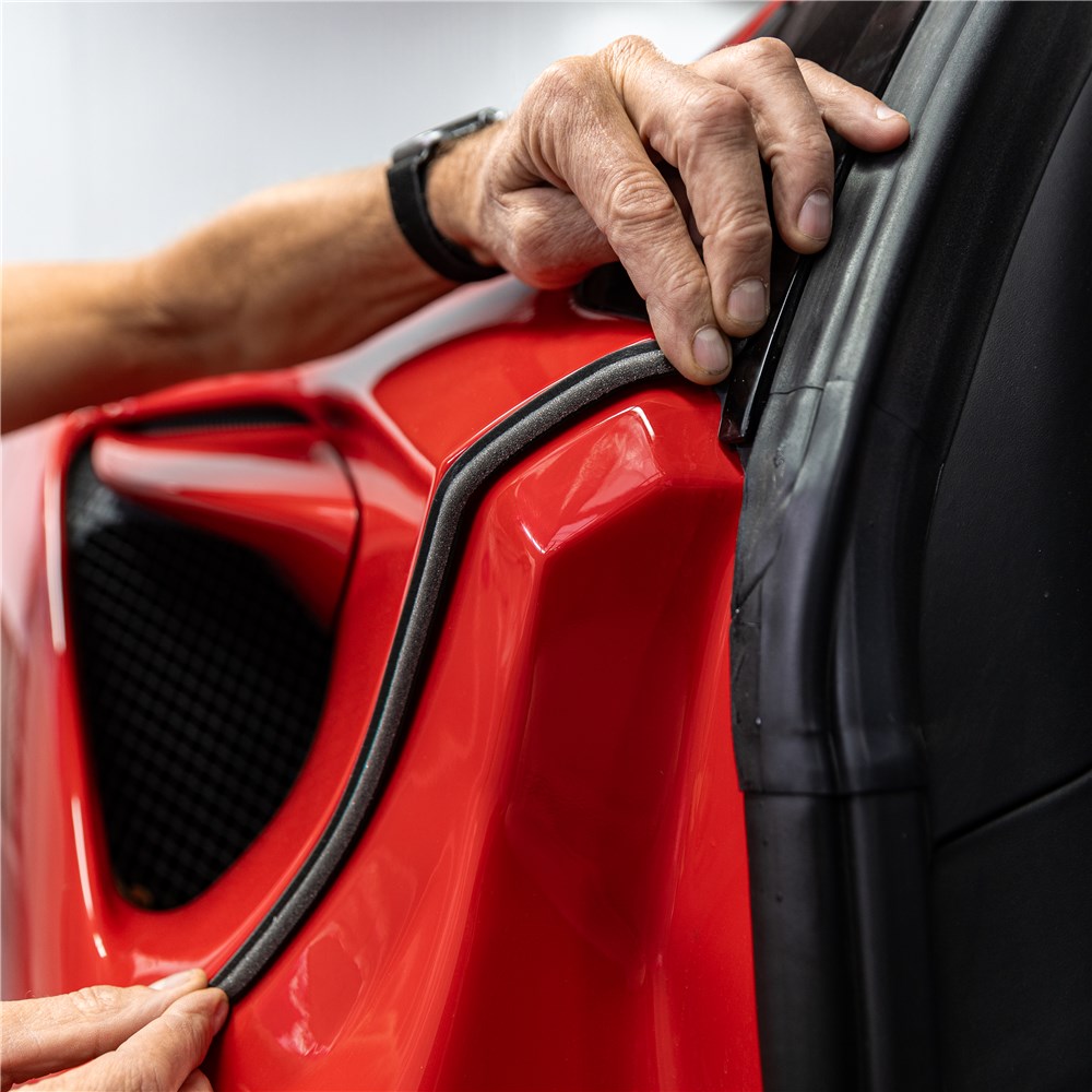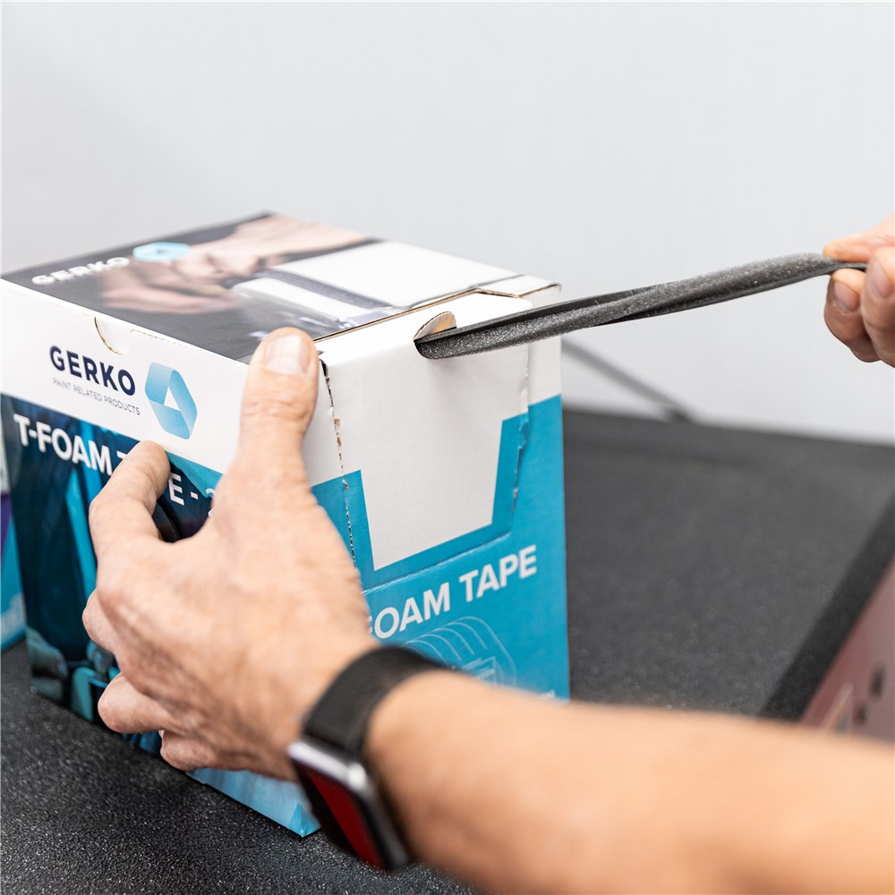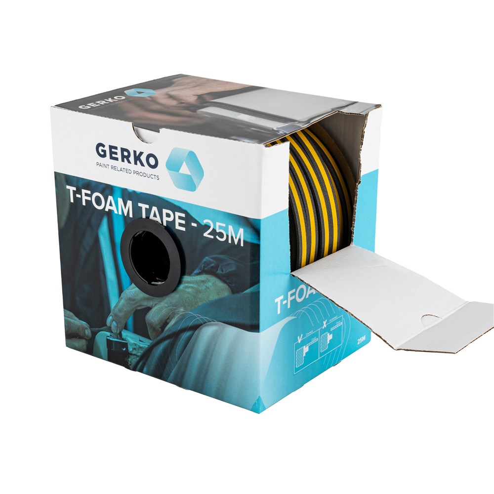 Gerko T-foam masking tape has a semi-rigid flat shape that facilitates quick and easy placement on edges. Gerko T-foam tape is the ideal masking solution for reducing masking time around doors, tailgates and other vehicle access points. When the tape is attached to the edge of the surface, the paint does not enter the vehicle and stays perfectly on the edge, imperceptible to the eye. The adhesive does not decompose when heat is applied in the booth and leaves no residue on the sheet.