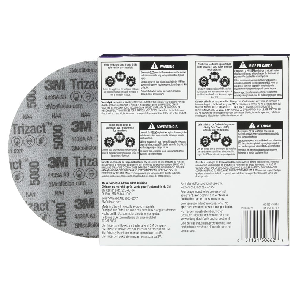 Removes P3000 fine grade scratches. Can reduce or eliminate the need for compounding in specific situations. Long lasting, even-wearing abrasive can reduce or eliminate extra materials and even full stages in specific cases. Hookit attachment system allows for fast, easy change outs with Hookit disc pads and soft interface pads.