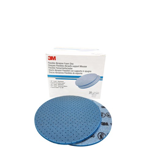 3M Hookit Flexible Abrasive Foam Discs combine flexible aluminium oxide abrasives with a soft foam backing to create a high performing, versatile blending abrasive for wet or dry use by hand or machine.
