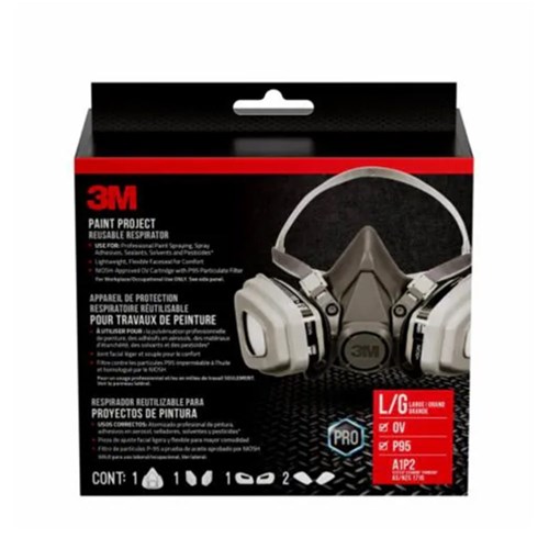 3M™ TEKK Protection™ Paint Project Respirator, used by professionals for certain paint spraying, solvents and pesticides, provides at least 95% filtration efficiency against solid and liquid aerosols including oils in additional to using it to help protect against certain organic vapors.