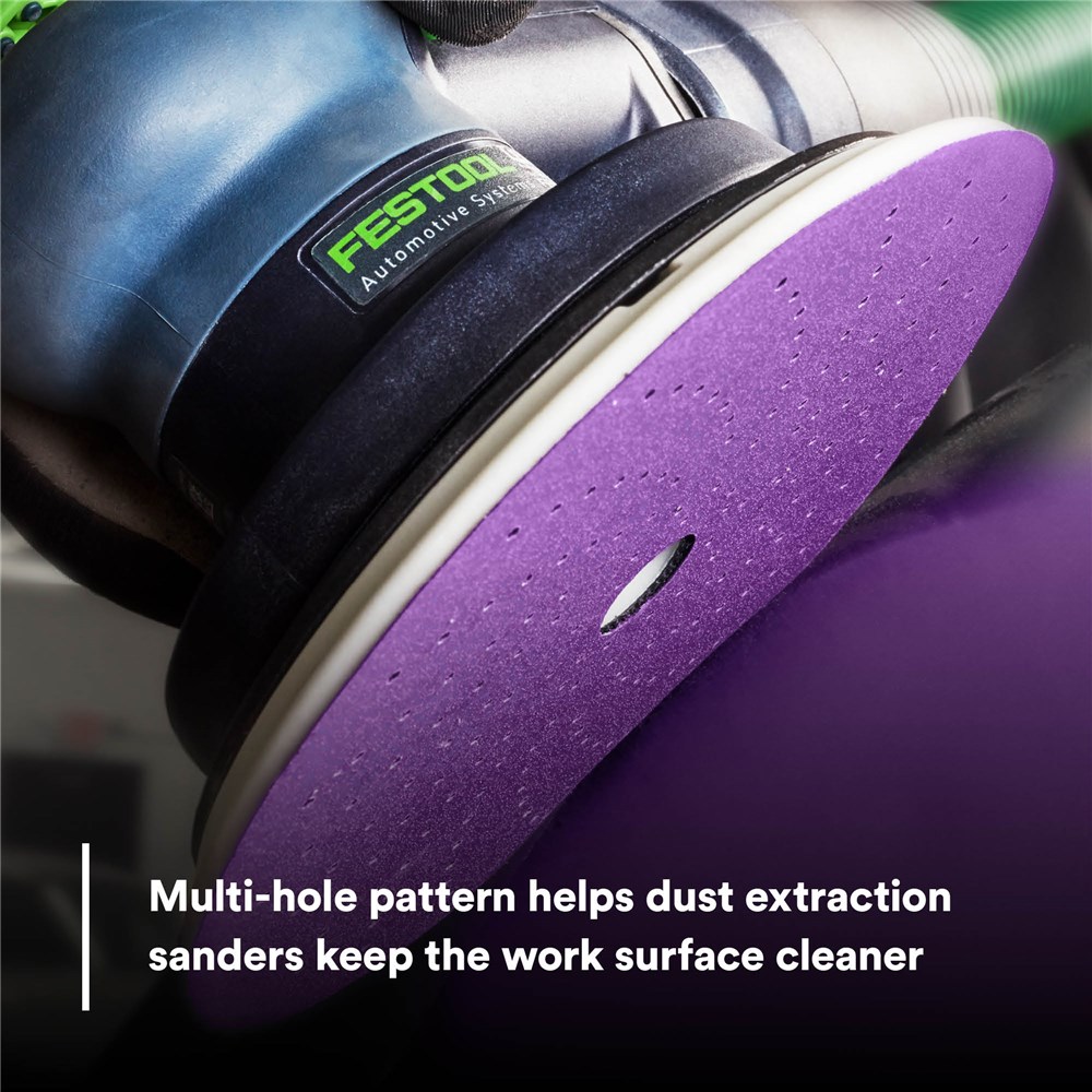 3M Cubitron II Hookit Clean Sanding Abrasive Disc 737U combines the highest 3M technology for automotive repair. Its long-lasting triangular shaped grain and multi-hole pattern for superior dust extraction allow for a long disc life. The wide range of available grades offer discs for coarse body work up to fine sanding of blending areas. The 3M Hookit system makes for quick disc change-outs. This disc is perfect for removing paint, shaping body filler, fine feather-edging, final prep before priming, or even surface structure removal of clearcoats and preparation of blending areas.