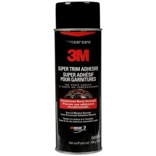 3M General Trim Adhesive bonds automotive materials such as carpeting, vinyl, fabrics, and plastics to metal and other hard, impervious surfaces. Our high-strength adhesive offers good heat and water resistance. Recommended for bonding carpet fabric and plastic to metal. Secure bonding to hard, impervious surfaces. Aerosol adhesive offers easy application. Dries to a clear color for a low profile appearance.