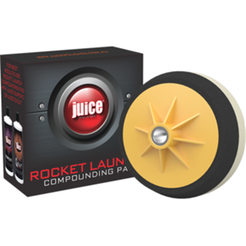 The Juice Rocket Launch compounding pad is uniquely balanced and designed to eliminate swirl by helping the operator to finish with the buff pad in the optimum level position. This is achieved by aligning the black foam wear indicator with the finished surface.