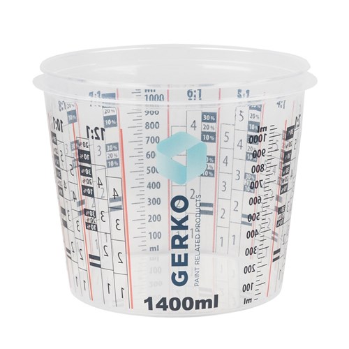 This professional mixing cup is made of high-quality polypropylene and is completely free of phthalates and silicones. The material is resistant to thinner and solvents, making the cup ideal for mixing all types of paints and 2K lacquers. Thanks to the flat bottom, the cup is stable during use, and the stackable design allows for space-saving storage. Highest quality mixing cup for the best mixing. Clear printing of contents and mixing ratios. Fitted with support feet to prevent cold transfer during mixing. Matching lids (Available ONLY in boxes of 200 pieces per box) Use code: GML1400. Mixing Cups also available in boxes of 200 pieces per box code: GMX1400