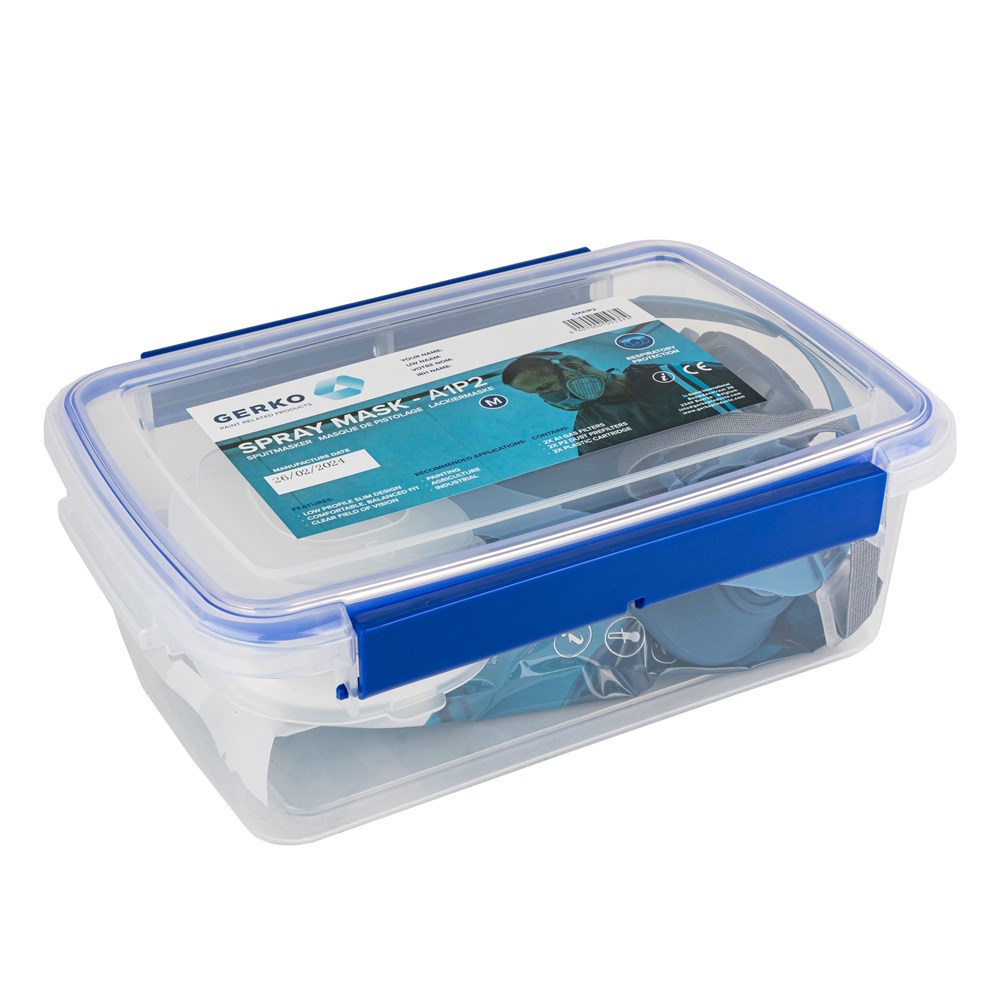 Spray mask that protects against inhalation of isocyanates, from paint or solvents. The mask fits snugly around nose and mouth. This PPE is designed to protect against hazards that can cause irreparable damage to health. Each mask comes in an airtight storage box with two A1 carbon filters and two P2 pre-filters. Replacement is necessary after a period of use of up to 40 hours. Complies with the UNE-EN 140 standard and is CE-certified under number 0159.