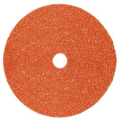 This premium fibre disc features 3M's proprietary new ceramic mineral. Designed for mild steel metalworking applications such as weld grinding, beveling, flame-cut edge clean-up, and deburring. Designed for mild steel applications, the proprietary 3M Precision Shaped Grain technology improves disc life (up to 2 times or more), cuts faster and can increase productivity compared to other leading ceramic discs. Takes time out of edge chamfering, beveling and removing stainless steel welds, mill scale, pits and imperfections, machining grooves and more to deliver a lower cost per grind. -Precision-shaped abrasive grain - Cuts Fast - Lasts Longer - Runs Cooler - 7/8" center hole mount is compatible with 3M Disc Pad Face Plates and Hubs, and requires the use of a disc retainer nut (all sold separately) - Complete carbon steel solution