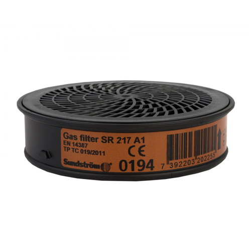 Gas filter SR 217, Class 1 are designed for use with Sundstrom half masks and full face masks. The filter are of type A and provide protection against organic gases and vapors, such as solvents, with boiling points > +65 degC. The gas filter can easily be combined with particle filter SR 510 P3 R in order to obtain protection also against aerosols (particles), e.g. during spray painting.