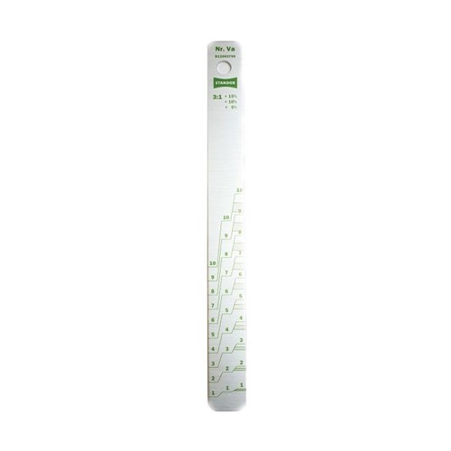 Standox mixing stick. Front- Standocryl VOC-HS-Clearcoat K9520 - 2:1 2K-HS-Hardener Back- Standohyd Plus Basecoat - 5 / 10 / 15% Standox VE-Water