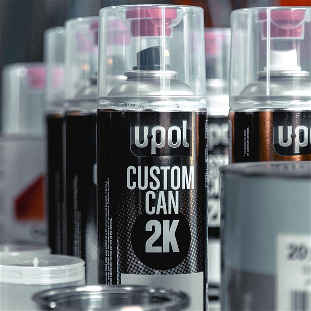A 2K pre-gassed Custom Can that can be filled with 100ml of a 2K solvent based topcoat. It gives a clog-free, professional, spray gun finish with the convenience of an aerosol.